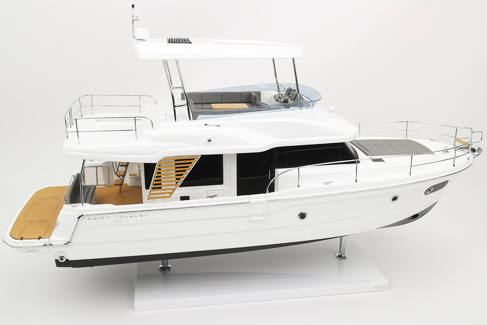 Fidèle réplique du Bénéteau Swift Trawler 48. Cette maquette officielle excluisive à l’échelle 1/20ème est réalisée en partenariat avec le chantier Bénéteau d’après les plans d’origine.