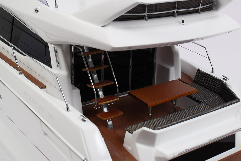 Fidèle réplique du Prestige 460 Fly. Cette maquette officielle à l’échelle 1/20ème est réalisée en partenariat avec le chantier Jeanneau d’après les plans d’origine et est validée par le chantier.