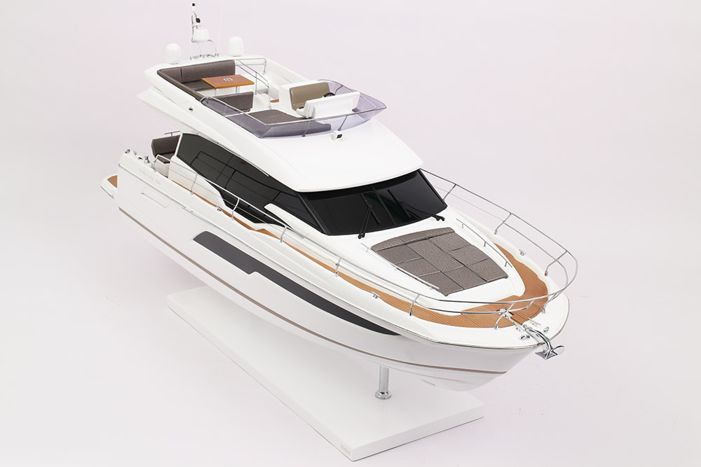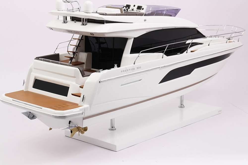 Cette maquette officielle à l’échelle 1/20ème de la Prestige 520 est réalisée en partenariat avec le chantier Prestige-Yacht d’après les plans d’origine.
